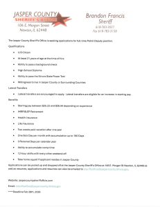 The Jasper County Sheriff’s Office is seeking applications for full-time Patrol Deputy position.
